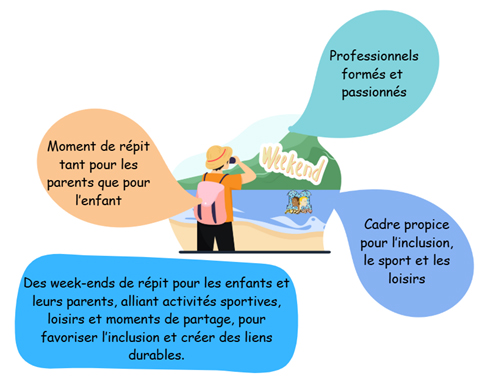 Ces week-ends sont aussi un moment précieux pour favoriser l’inclusion sociale, où les enfants, quelle que soit leur situation, peuvent participer ensemble à des jeux collectifs, des ateliers créatifs ou des sorties en pleine nature. Cela leur permet de développer des liens solides et de vivre des expériences communes qui favorisent la compréhension, l’amitié et la solidarité.